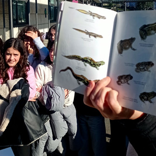 Na passada sexta feira, dia 16 de janeiro de 2025, a Bióloga Marta Oliveira, Investigadora do BIOPOLIS/ CIBIO-InBIO, Centro de Investigação em Biodiversidade e Recursos Genéticos, da Universidade do Porto, realizou um workshop sobre "Répteis e Anfíbios de Portugal", para os alunos das turmas do 6º A, do 6º B e do 8º G da nossa Escola.